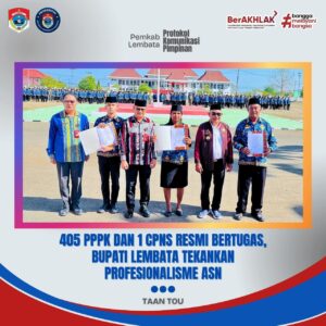 Selain itu, ia mengingatkan para CPNS dan PPPK agar menjaga sikap dalam bermedia sosial serta menunjukkan perilaku yang proaktif, kreatif, dan inovatif. “Jadikan momentum ini sebagai awal untuk bekerja lebih sungguh-sungguh dalam mengimplementasikan program prioritas pemerintah, terutama Program Unggulan Nelayan-Tani-Ternak (NTT), demi terwujudnya Lembata yang maju, lestari, dan berdaya saing,” ujar Bupati.
