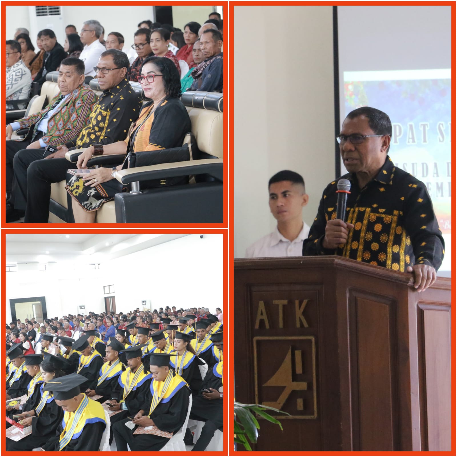 Pada kesempatan tersebut, Wakil Gubernur Nusa Tenggara Timur, Johni Asadoma, menyerahkan penghargaan kepada tiga lulusan terbaik Akademi Teknik Kupang (ATK), yakni Christin Sisilia Fernandez, Sukirman Enu, dan Frudensius Yanto Ranggus, didampingi Ketua Yayasan ATK dan Direktur ATK.