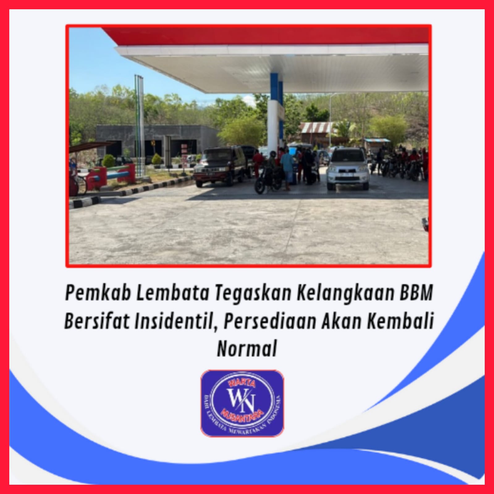 LEMBATA : WARTA-NUSANTARA.COM–  Pemerintah Kabupaten (Pemkab) Lembata menegaskan bahwa kelangkaan Bahan Bakar Minyak (BBM) yang terjadi dalam dua hari terakhir di wilayah Kabupaten Lembata bersifat insidentil dan disebabkan oleh kendala cuaca serta gangguan transportasi laut, bukan karena terhentinya pasokan BBM dari Pertamina.