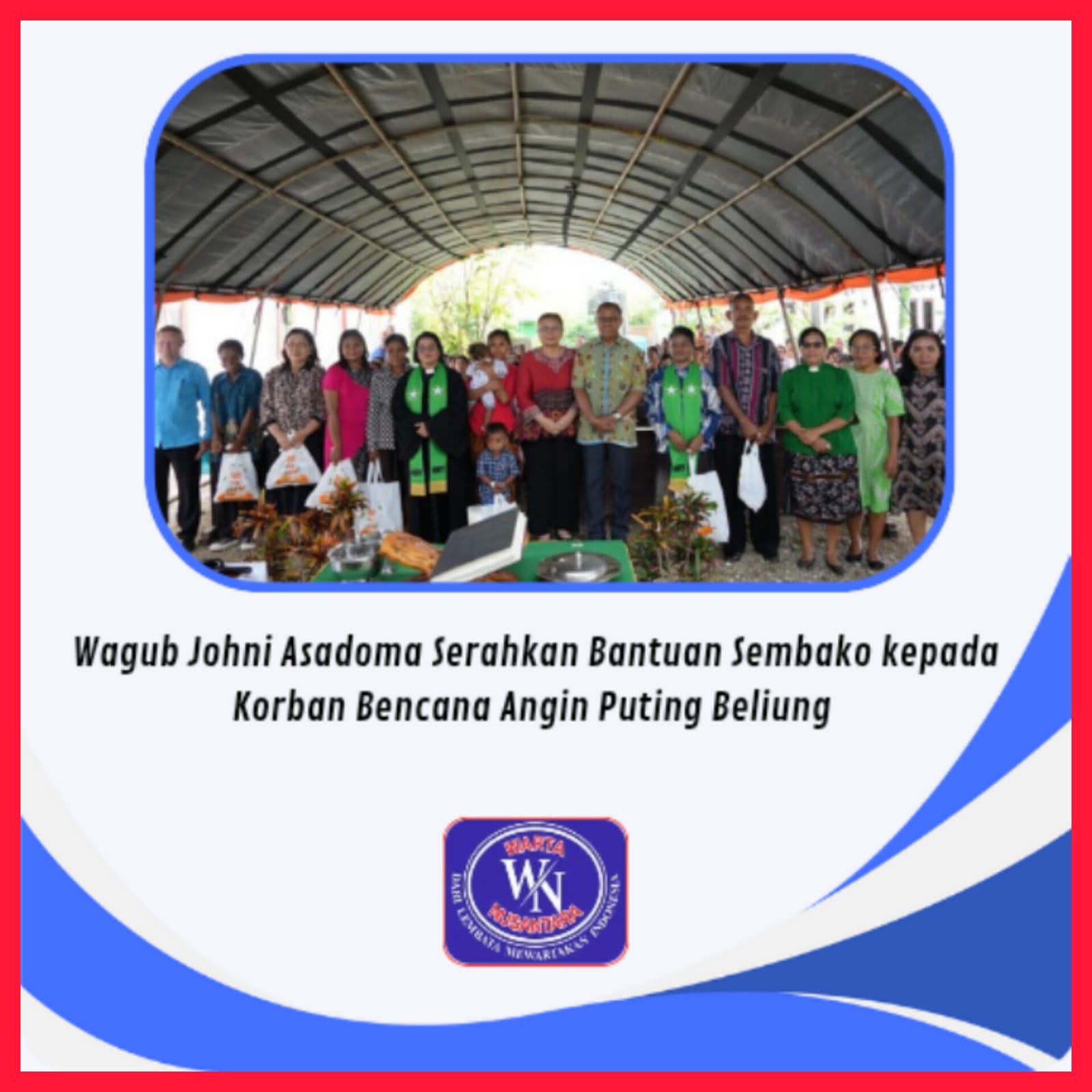 KUPANG : WARTA-NUSANTARA.COM– Pada Minggu 25 Januari 2026 bertempat di Gereja GMIT Yegar Sahaduta, Klasis Kota Kupang Barat, Wakil Gubernur Nusa Tenggara Timur, Johni Asadoma, menyerahkan bantuan sembako kepada para korban bencana angin puting beliung yang melanda beberapa rumah warga dan Gereja di Kelurahan Bello, Kota Kupang. Wakil Gubernur yang didampingi Staf Ahli TP PKK Provinsi NTT Ny. Vera Christina Sirait Asadoma juga sebelumnya ikut hadir dalam ibadat yang dilaksanakan di Gereja GMIT Yegar Sahaduta, Klasis Kota Kupang Barat tersebut.