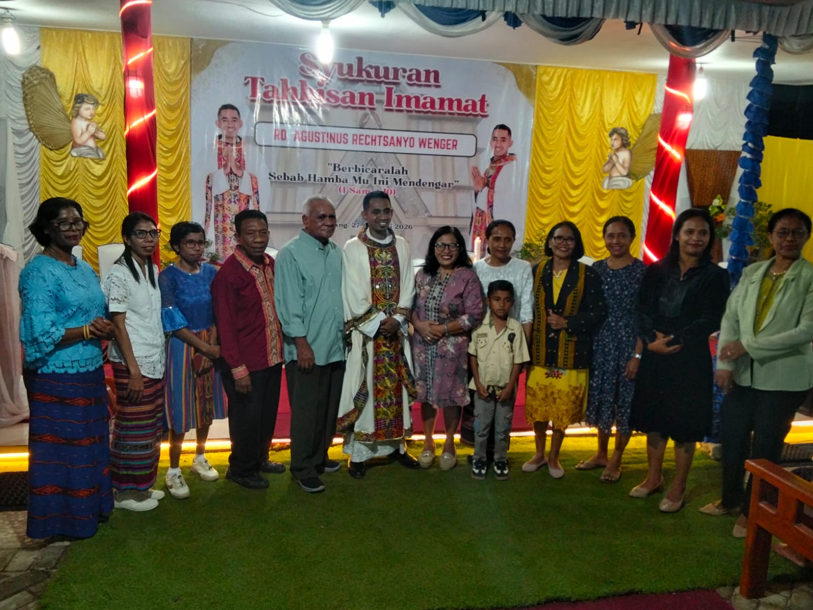KUPANG : WARTA-NUSANTARA.COM—  Perayaan misa perdana Romo Agustinus Recthsanyo Wenger berlangsung khidmat di Wilayah 3, Paroki Santo Yoseph Pekerja Penfui, Kupang, Selasa, 27 Januari 2026 sore hingga malam hari. Sebagaimana diketahui, Romo Gusti adalah “Anak Paroki Santo Arnoldus Janssen Waikomo”, Dekenat Lembata, Keuskupan Larantuka, dimana pada 6 Januari 2026 ditahbikan menjadi Imam oleh Mgr. Hironimus Pakaenoni di Gereja Katedral Kristus Raja kupang.