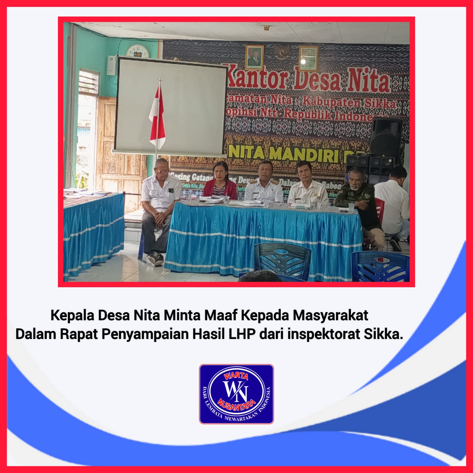 Dalam acara penyampaian hasil Laporan Hasil Pemeriksaan ( LHP) dari inspektorat Sikka, rabu 25 febuari 2026 di aula kantor desa Nita yang di hadiri oleh inspektorat Kabupaten Sikka, Camat Nita, Ketua BPD, Angota BPD, Kepala Desa Nita, T. A P3MD Kabupaten Sikka, pendamping desa kecamatan Nita, pendamping lokal desa Nita kepala Dusun Nita, ketua RT,RW, tokoh masyarakat, tokoh, perempuan dan toko pemuda.