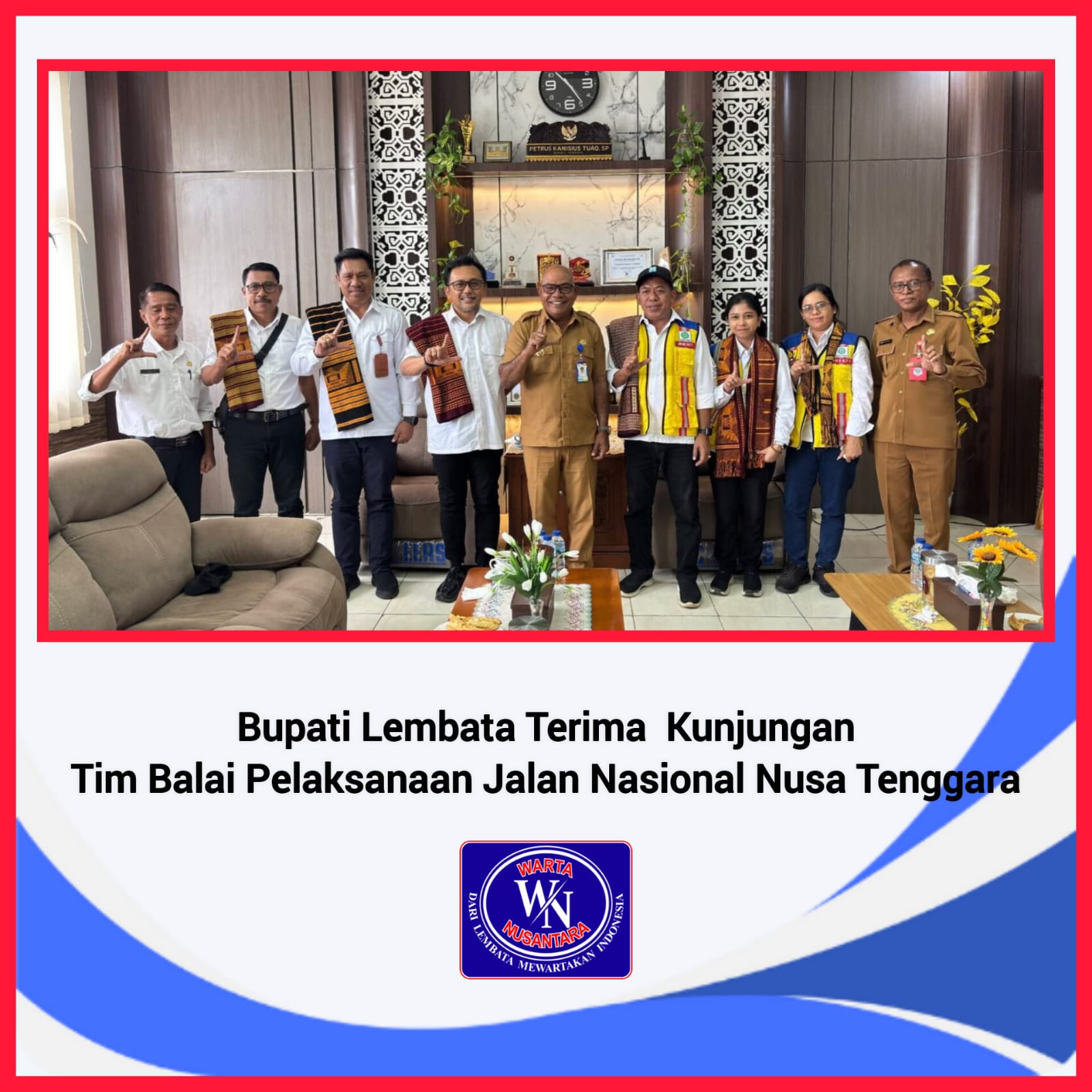 LEMBATA : WARTA-NUSANTARA.COM– Bupati Lembata, P. Kanisius Tuaq, S.P., didampingi Asisten III Bidang Administrasi Umum Yohanes Berchmans Daniel Dai, S.IP., menerima kunjungan Tim Balai Pelaksanaan Jalan Nasional (BPJN) Nusa Tenggara Timur di ruang kerja Bupati Lembata, Selasa (24/02/2026).