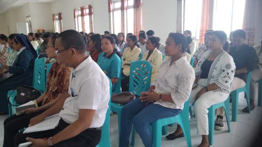 Kegiatan ini di buka oleh Bpk. Ngea Andreas S.Sos, M.SI. Dalam sambutannya Bapak Andreas sebagai wakil ketua bidang akademik dan kerja sama STPM Ursula menyampaikan bahwa “ pada prinsipnya kami sangat bersyukur dengan adanya kegiatan ini, di mana Sr Pimpinan TRUKF hadir secara langsung dan mau berbagi tentang pencegahan dan penangangan kasus kekerasan seksual.