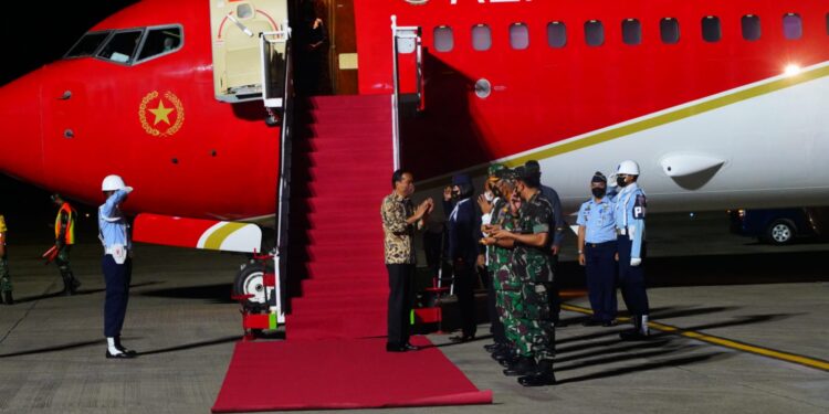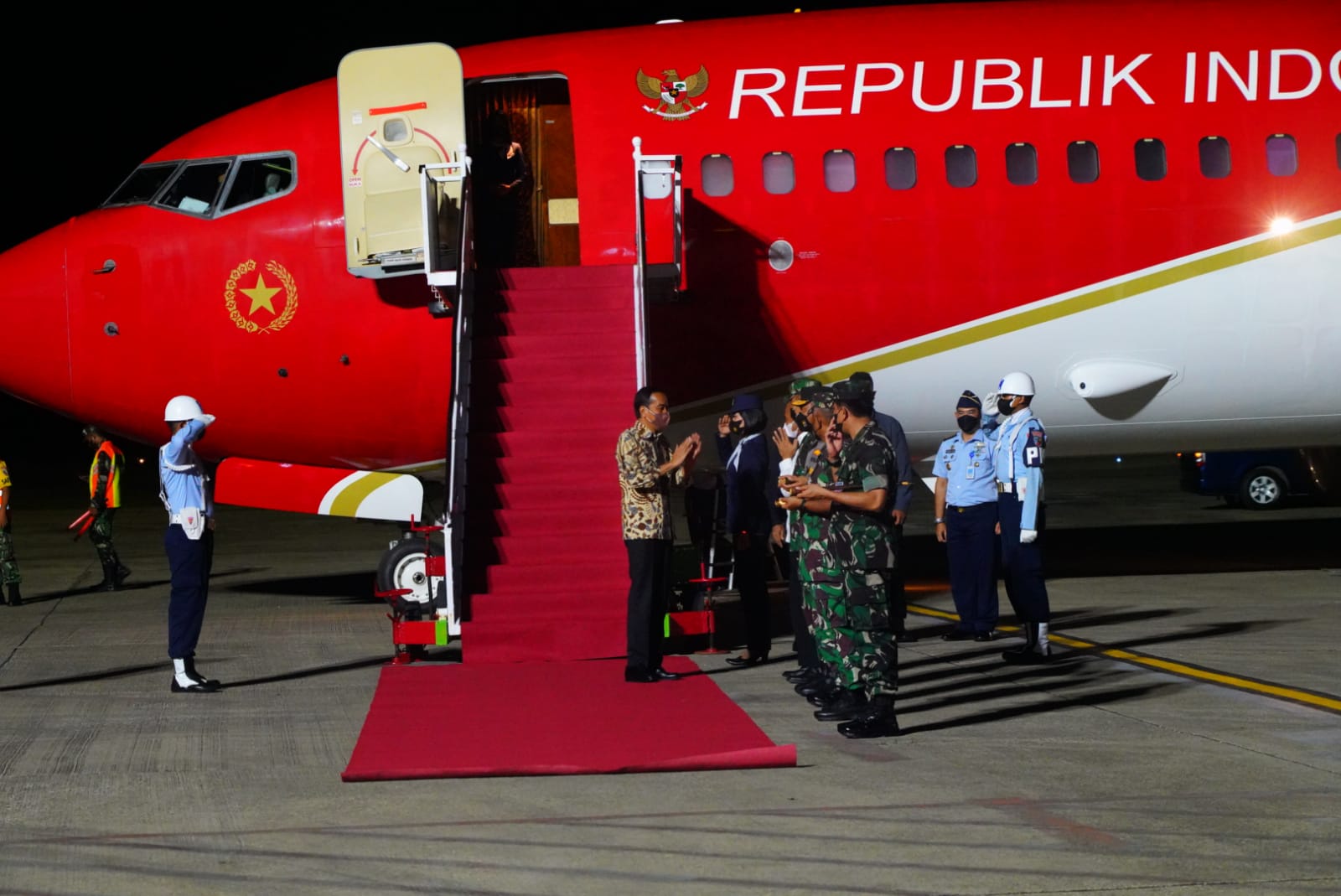 Kedatangan Presiden RI bersama rombongan ke Nusa Tenggara Timur (NTT) menggunakan pesawat Kepresidenan Boeing Business Jet (BBJ) 2 ini dalam rangka kunjungan kerja di wilayah Kota Kupang, Kabupaten TTS dan Belu.
