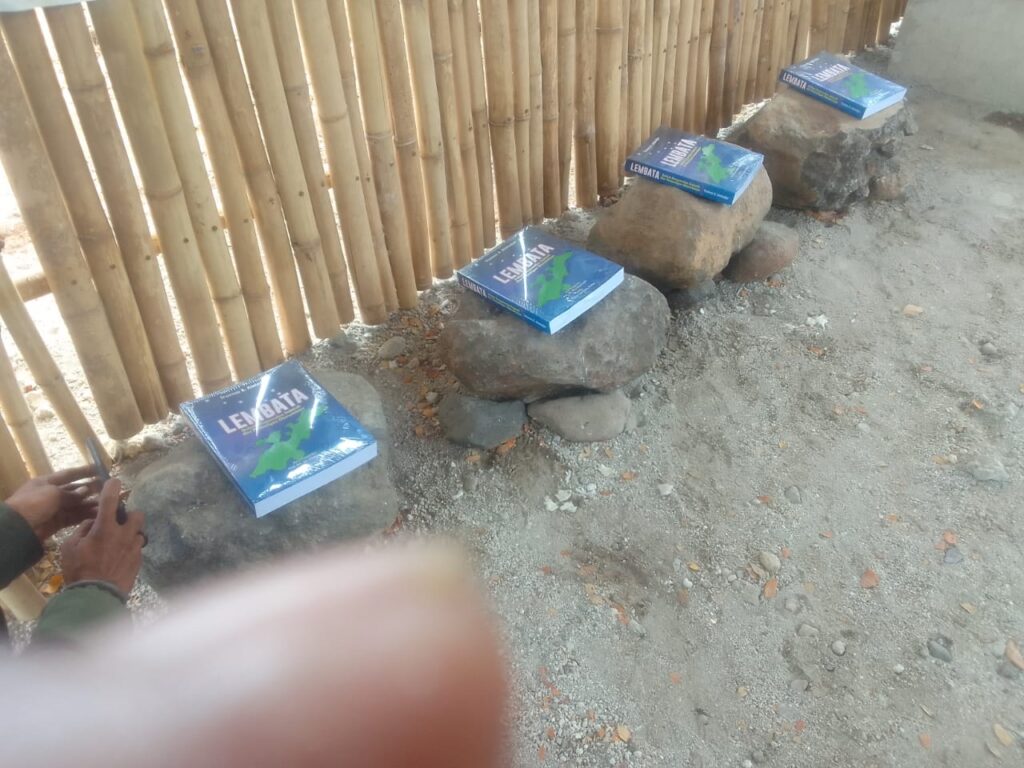 Seremonial adat penyerahan buku kepada Leluhur dan Pejuang Otonomi Lembata yang ditaktakan diatas 7 buah batu