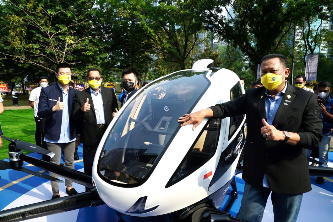 JAKARTA : WARTA-NUSANTARA.COM – Ketua MPR RI sekaligus Ketua Umum Ikatan Motor Indonesia (IMI) Bambang Soesatyo bersama Menteri BUMN Erick Thohir mendukung keberadaan taksi terbang listrik EHang sebagai transportasi masa depan yang bisa mendukung kegiatan pariwisata di berbagai destinasi favorit di Indonesia. EHang merupakan kendaraan Autonomous Aerial Vehicle (AAV) berteknologi listrik yang dioperasikan tanpa awak pilot yang ikut dalam penerbangan.