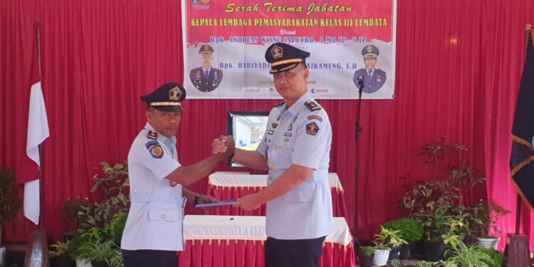 LEMBATA : WARTA-NUSANTARA.COM-Hari ini Selasa, tanggal 03 Januari 2023 bertempat di Kapela Lembaga Pemasyarakatan Kelas III Lembata, telah dilaksanakan kegiatan Serah Terima Jabatan (Sertijab) Kepala Lembaga Pemasyarakatan (Kalapas) Kelas III Lembata dari Kalapas lama Andreas Wisnu Saputro, A.Md.IP.,S.IP kepada Kalapas yang baru Hariyadi Nimrod Maikameng, S.H.
